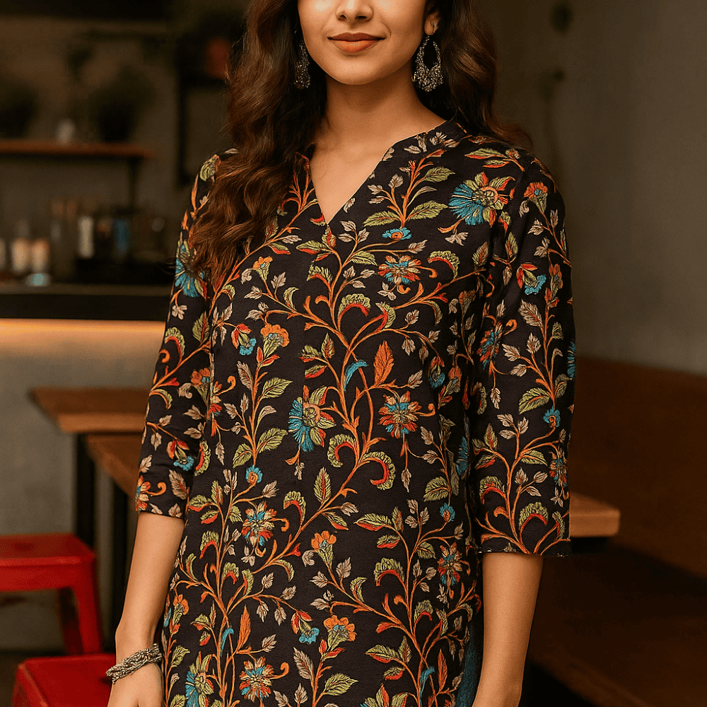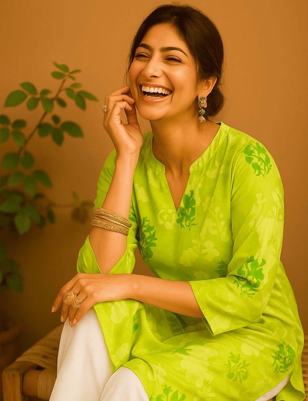 A kurti that finally understands Indian summers. The fabric feels feather‑light, the fit is forgiving yet shapely, and the prints are subtly joyful. I wore mine from metro rides to a dinner plan without changing a thing.
